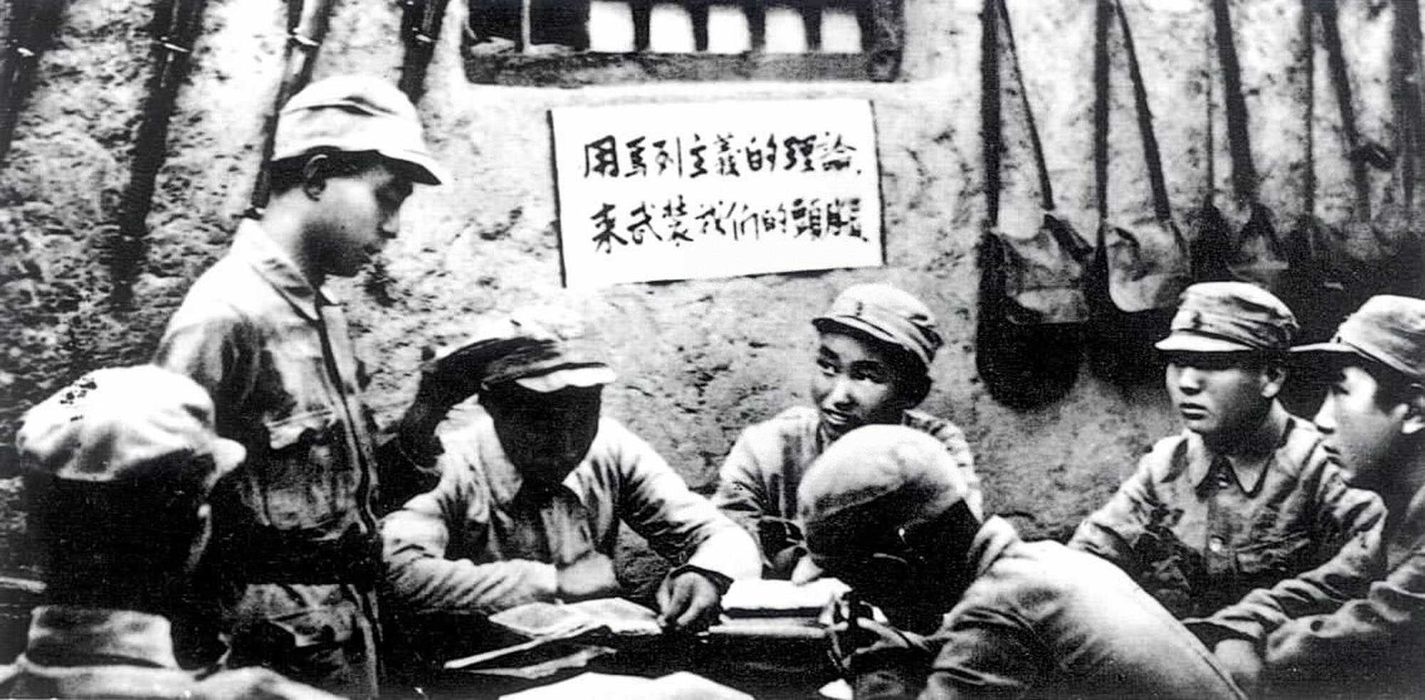 资料图 1942年2月1日,延安整风运动开始。这是战士们在进行整风学习(资料照片)。新华社发