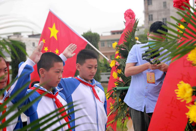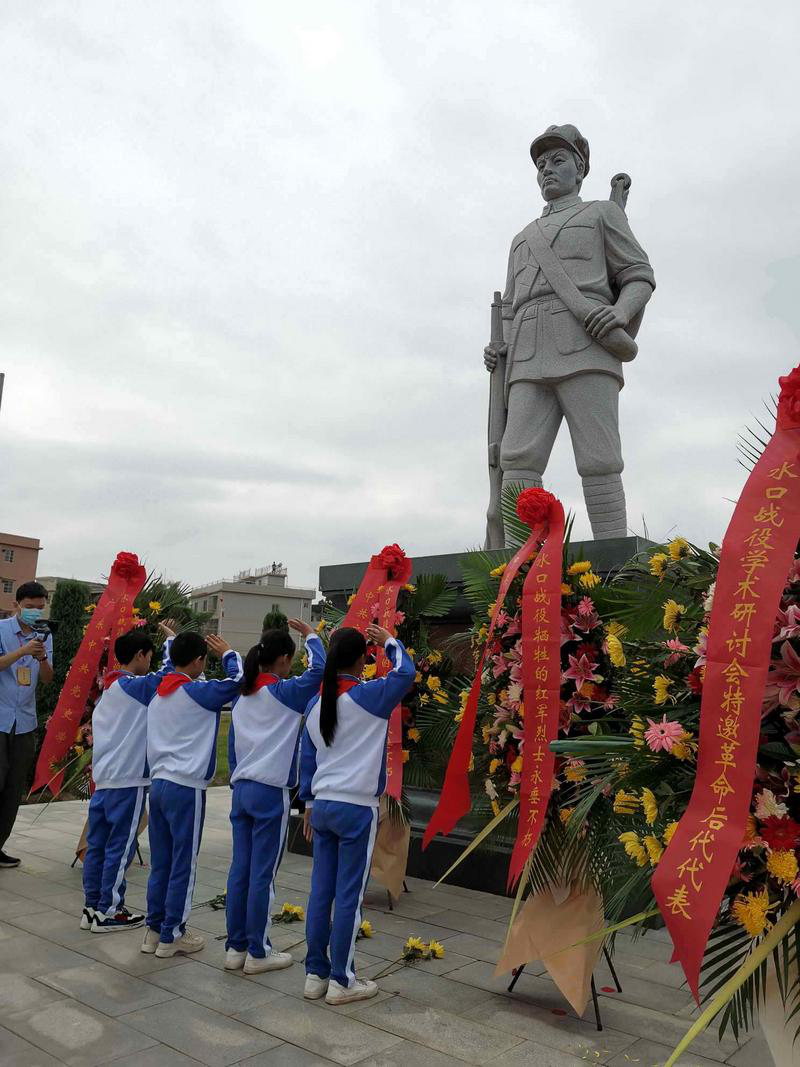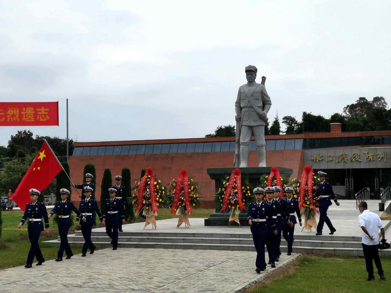 当天上午,南雄市在水口战役主题公园举行祭奠烈士活动。在向红军烈士纪念碑敬献花篮后,参会人员全体肃立,奏唱国歌。随后,有关领导上前整理花篮缎带,全体人员默哀、鞠躬,少先队员、共青团员代表敬献鲜花。全体人员缓步绕行纪念碑一圈,向在水口战役中牺牲的革命先烈致以崇高的敬意和深切的悼念。
