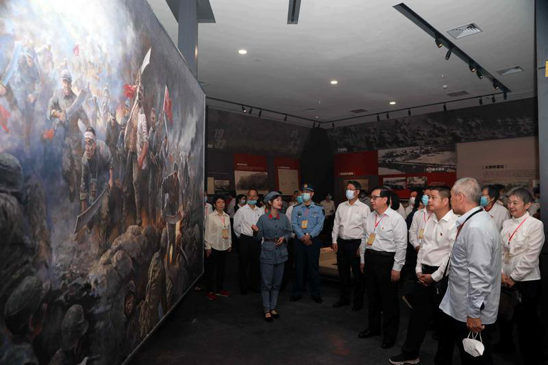 祭奠活动结束后,参会人员分批参观了水口战役陈列。陈列建筑面积1500多㎡,通过浮雕、微缩景观、油画、模拟实景战场等形式,生动展现水口战役的战略决策经过,以及红军水口战斗浴血杀敌,群众积极支援作战、舍命救红军、提前割稻谷、一块银元等感人故事。