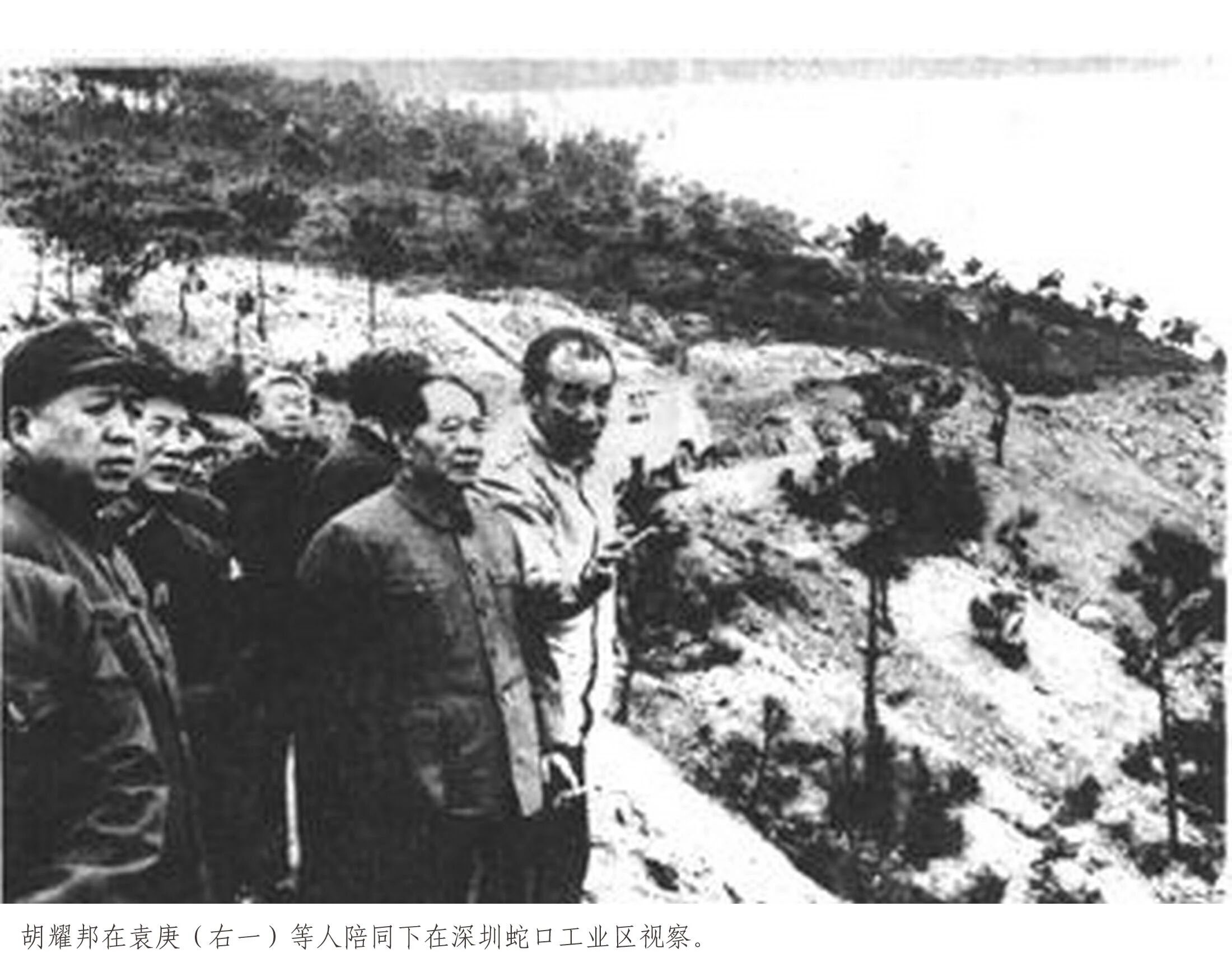 2月9日上午,胡耀邦视察了西沥水库和蛇口工业区。袁庚在汇报干部选举制度时提出:“如果群众有权选举和监督干部,我相信可以改变一下干部结构和干部作风。我们想做这样一个不大不小的改革,准备冒一点风险。”胡耀邦十分肯定地做出回应,说:“好嘛!著名戏剧家关汉卿就曾写了个讽刺官僚主义者的诗,他骂县太爷堂上的鼓是‘一棵大树腹中空,上头全是皮儿糊,每天上堂敲三下,扑通扑通又扑通’。”最后,袁庚特意把两位刚从大学毕业被招聘到工业区的青年介绍给总书记,胡耀邦与他们握手,询问了他们的年龄和所学专业,说:“长江后浪推前浪,英雄出自少年郎。你们是少年郎啊,特区是个新舞台,中国的改革开放事业要靠一代又一代人不断努力,你们要有大作为。”得到胡耀邦的鼓励之后,蛇口工业区开始推行干部体制改革,民意推选领导班子,这一试验一直持续到1994年。胡耀邦在离开蛇口工业区之前还强调说:“沿海一带城市,像汕头、厦门,都要学蛇口这样,用蛇口的办法去搞,可以搞活一点。”