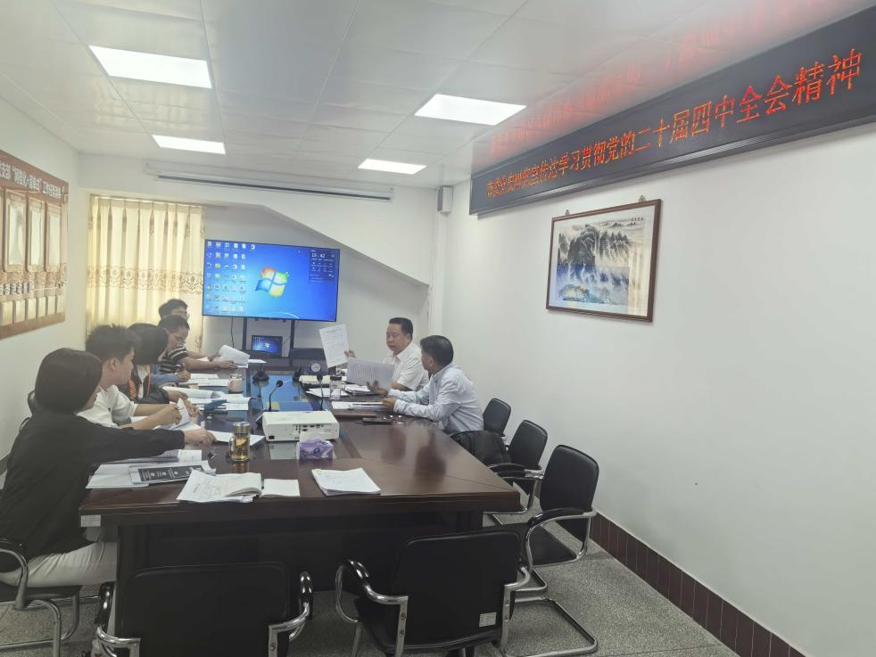 10月28日,云浮市委党史研究室主任汪杰主持召开全体干部职工会议,传达学习党的二十届四中全会精神及市委有关要求,研究贯彻落实全会精神的举措。