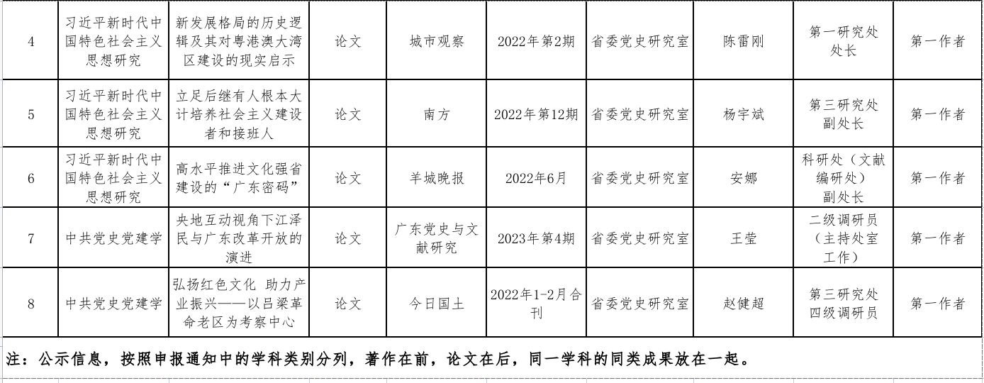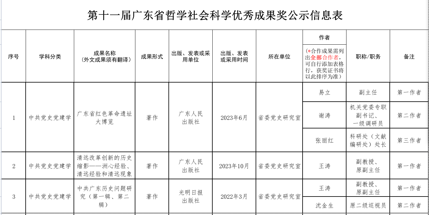 第十一届广东省哲学社会科学优秀成果奖公示信息表