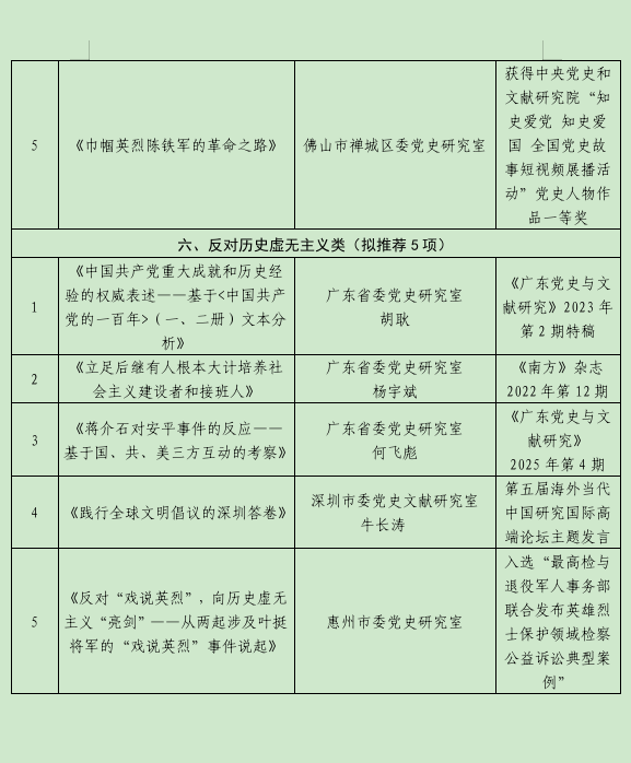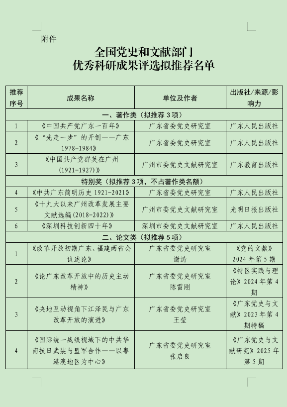 关于拟推荐参加全国党史和文献部门优秀科研成果评选名单的公示