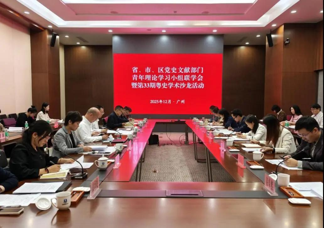 2025年12月12日,广东省委党史研究室与广州市委党史文献研究室,联动海珠区、天河区、白云区3地党史文献部门,在广州市地方志馆联合举办党史文献部门青年理论学习小组联学会暨第33期粤史学术沙龙活动。本次活动的主题为“以党史和文献事业高质量发展为中国式现代化建设添彩——深入学习贯彻党的二十届四中全会精神、习近平总书记视察广东和出席第十五届全国运动会开幕式重要讲话重要指示精神”。市委党史文献研究室主任黄凯旋出席并作总结讲话。省、市、区三级党史文献部门青年理论学习小组成员和青年代表共40多人参加活动,市委党史文献研究室副主任、机关党委书记刘新峰主持活动,省委党史研究室机关党委专职副书记、一级调研员谢涛出席。